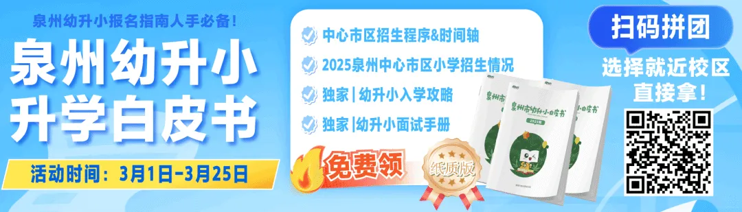 只需3 人拼团,即可免费领取纸质版《泉州市幼升小白皮书》,选择新东方就近校区直接领取,方便又省心!