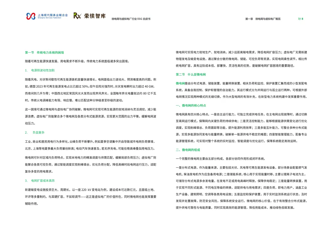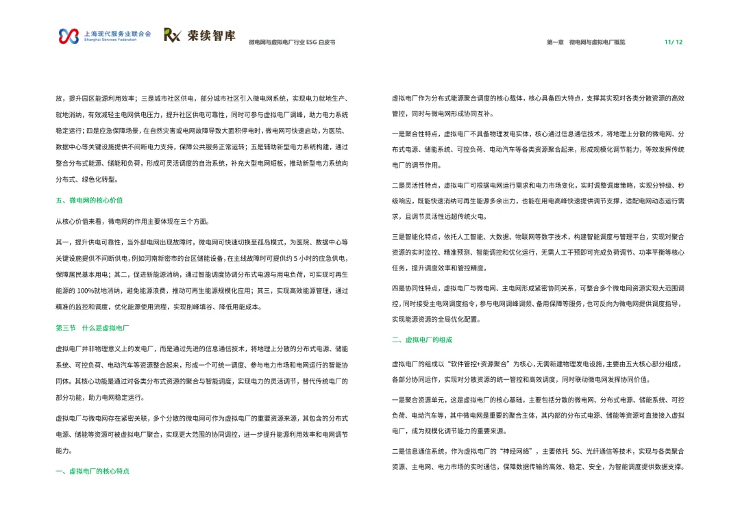 《微电网与虚拟电厂行业ESG白皮书》系统性地梳理了微电网与虚拟电厂的技术内涵、发展脉络、商业模式、全球实践及其与ESG(环境、社会和治理)理念的深度融合。以下是对其核心内容与价值的深度解读: