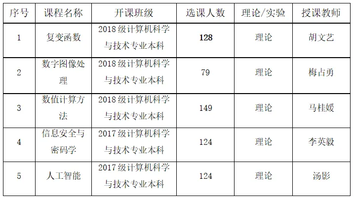 计算机科学与技术专业对理论课和实验课均开展有在线教学,并以理论课为主。在线教学课程5门,理论教学班24个,任课教师5人。