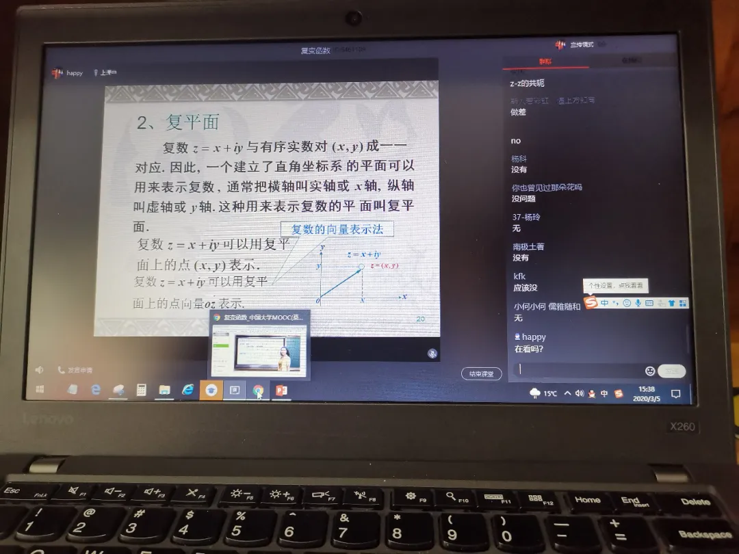计算机科学与技术专业按照培养计划,在大二春季学期开设了《复变函数》这门课程。复变函数中的许多概念、理论和方法是实变函数的在复数领域内的推广和应用,需要扎实的《高等数学》知识,教学具有一定的难度。受此次疫情影响,假期学校响应教育部提出“停课不停学”的号召,组织教职工进行线上教育培训,我内心非常的忐忑,一是我没有开展过线上教学,二是课程涉及到大量数学公式的推导和运算。为了顺利开展线上教学,我在假期学习了中国大学MOOC、超星学习通、雨课堂、QQ课堂等网络教育平台,比较了每个平台的教学资源并结合本校学生的实际情况,最终我采用了中国大学MOOC异步SPOC+慕课堂+QQ课堂的教学模式。中国大学MOOC提供了与本课程对应的教学视频和资料,教材和学时数一致,因此采用异步SPOC模式,匹配慕课堂进行课堂组织和学生管理,再用QQ课堂进行重点内容讲解、答疑和互动。
