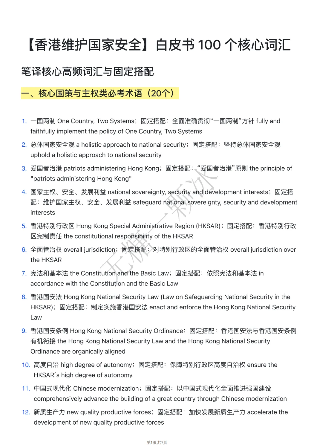 中英双语 |【香港维护国家安全】白皮书 100 个核心词汇