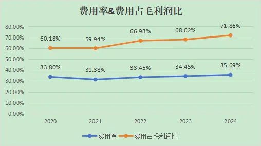 毛利率和营业利润率总体趋势就是下滑,费用率以及费用占毛利润的比例却在逐年攀升,这应该就是前者不断下滑的主要原因了吧。