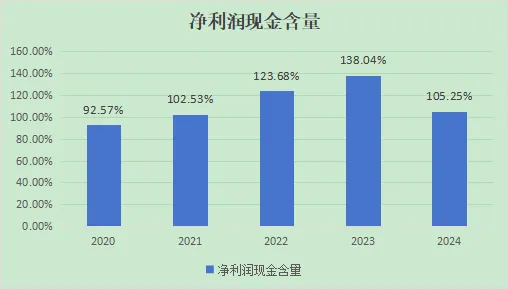 第二张图展示出净利润的现金含量也基本能稳定在100%以上,2020年的不足100%可以关注下具体原因。