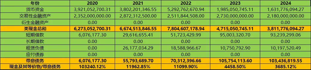 6. “现金及其等价物÷带息债务”:万一债主一起上门收回借款,公司能不能还得上,看企业的安全性,虽说一般都不会出现此种情况,就像银行一般都不会出现挤兑一样。但巴芒二老的理念之一就是,如果一件事情最坏的结果我接受不了,那么我就不会去做这件事,因为再多的涨幅,都经受不住一次归零。