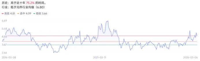 当前市盈率(TTM)32,高于成立以来28.2%的时间。市净率4.82高于成立以来75.2%的时间。
