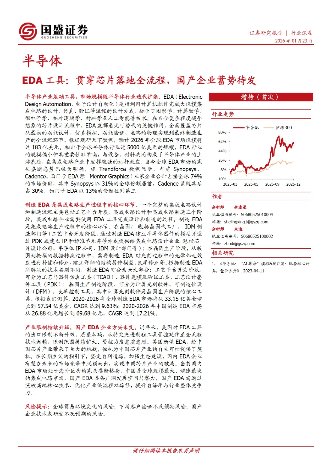 行业研究报告-《半导体行业EDA工具贯穿芯片落地全流程国产企业蓄势待发》