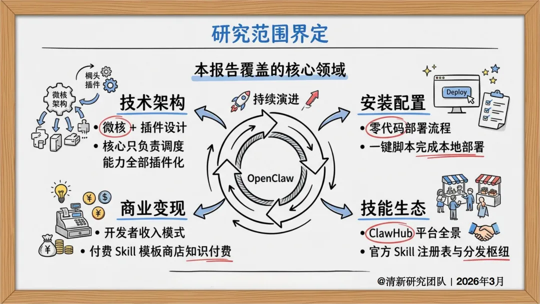 这份由清华大学清新研究团队发布的《OpenClaw 深度研究报告》,聚焦 OpenClaw 2.0 展开全面解析,梳理了其从独立开发者项目成长为全球最大 Agent 技能市场的发展历程、核心能力、生态体系、部署方式及未来趋势,同时提及国产平替 ZeeLin Claw,核心结论与关键信息如下: