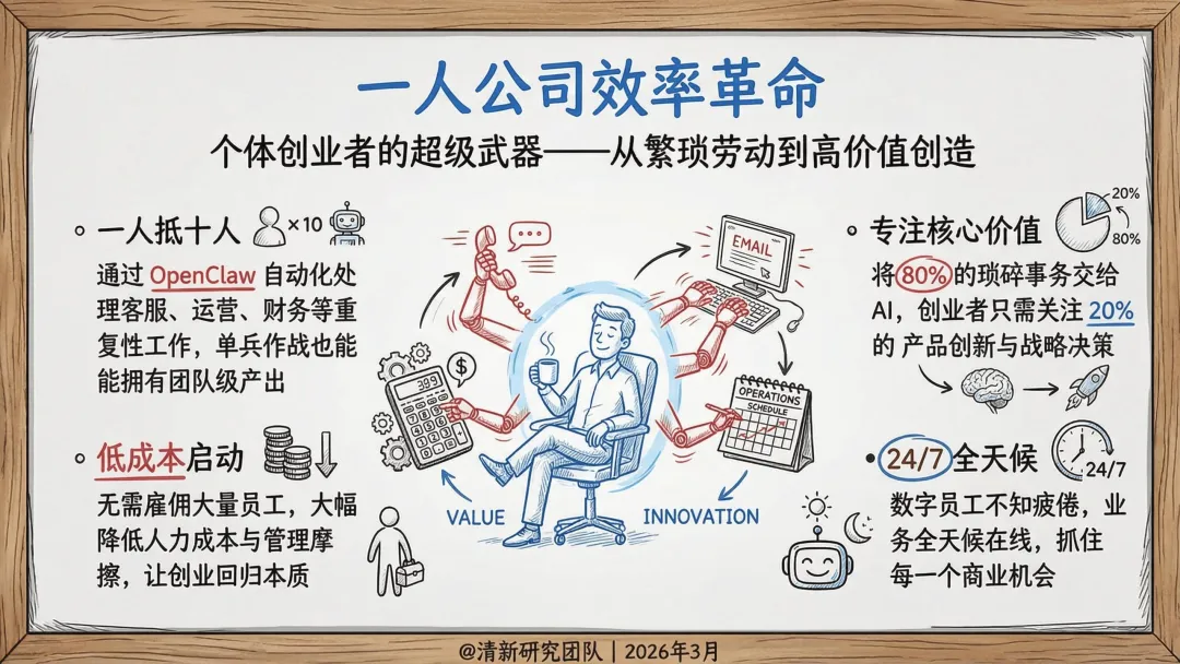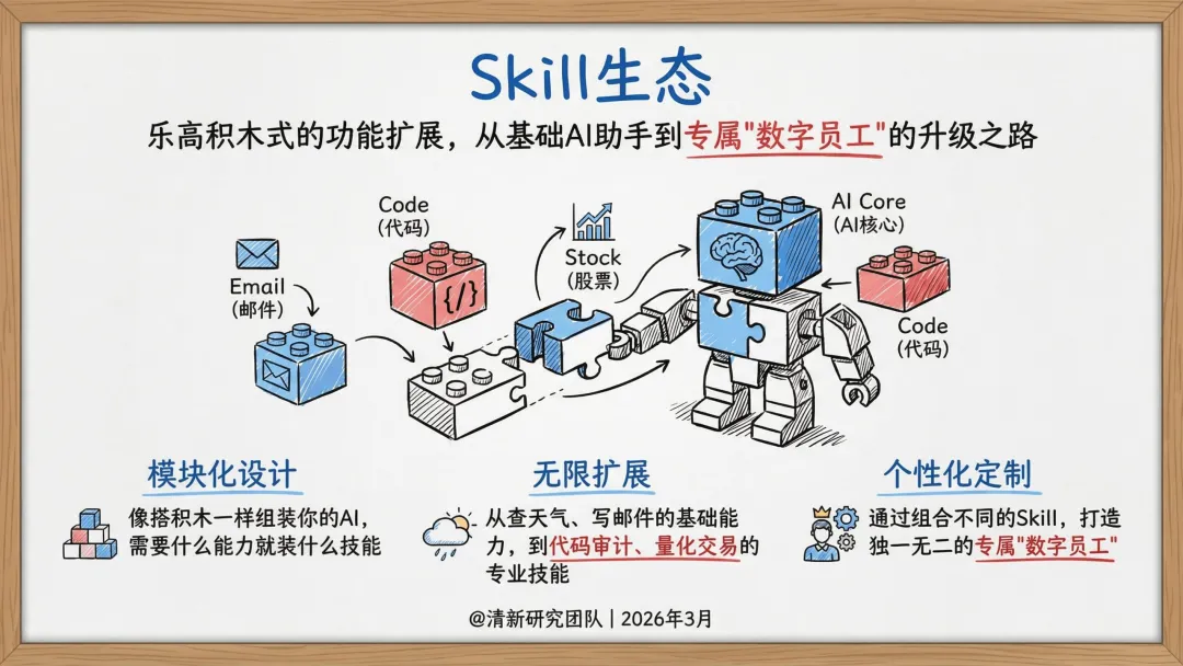 可通过技能组合解决多类工作痛点,如自动化日报(定时收集数据、生成并发送报告,每日省 30 分钟)、代码审查助手(自动扫描漏洞、提出优化建议)、自媒体流水线(一站式完成选题、写脚本、配图、发布,效率提 10 倍);核心价值是助力 “一人公司” 模式,通过自动化处理客服、财务等重复性工作,让个体实现团队级产出,专注核心价值创造。