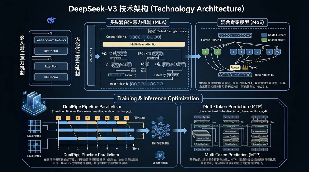 DeepSeek-V3 采用了 Multi-head Latent Attention (MLA) 技术:
