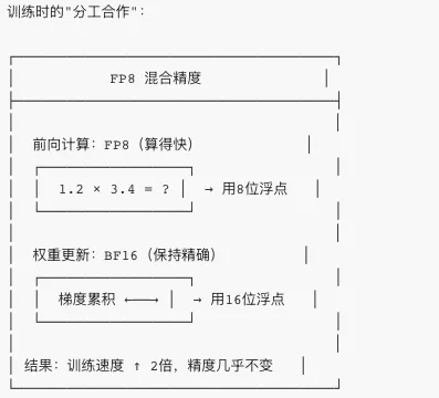 寓言:米其林大厨的"快速出餐"秘诀五星级餐厅需要精确的每道菜,但客流量大时怎么办?大厨发明了"半成品预处理":复杂调味 → 精确做(保留BF16)简单翻炒 → 快速做(用FP8)最终成品依然美味,但上菜速度快一倍!