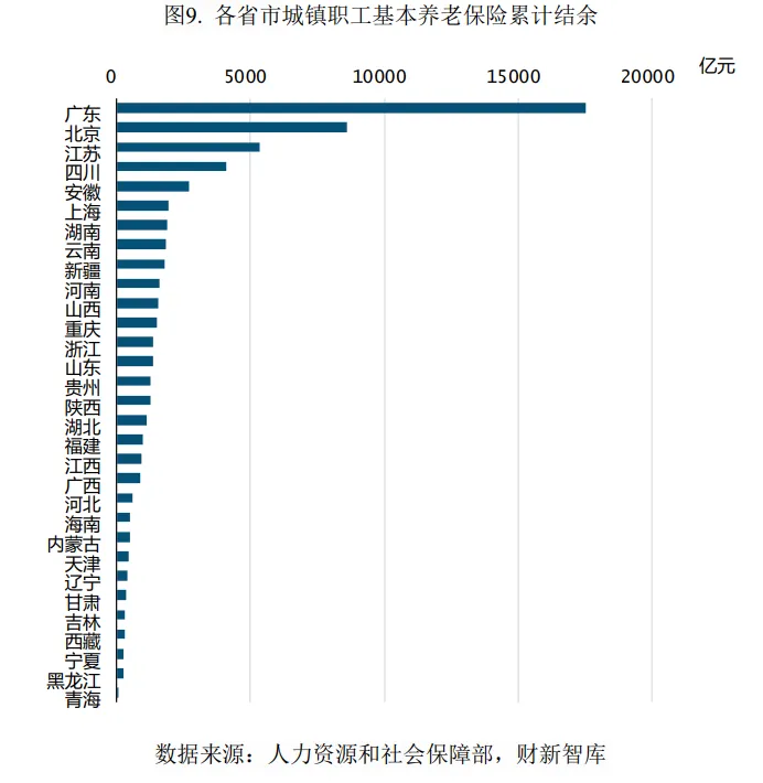 图:各省市城镇职工基本养老保险累计结余