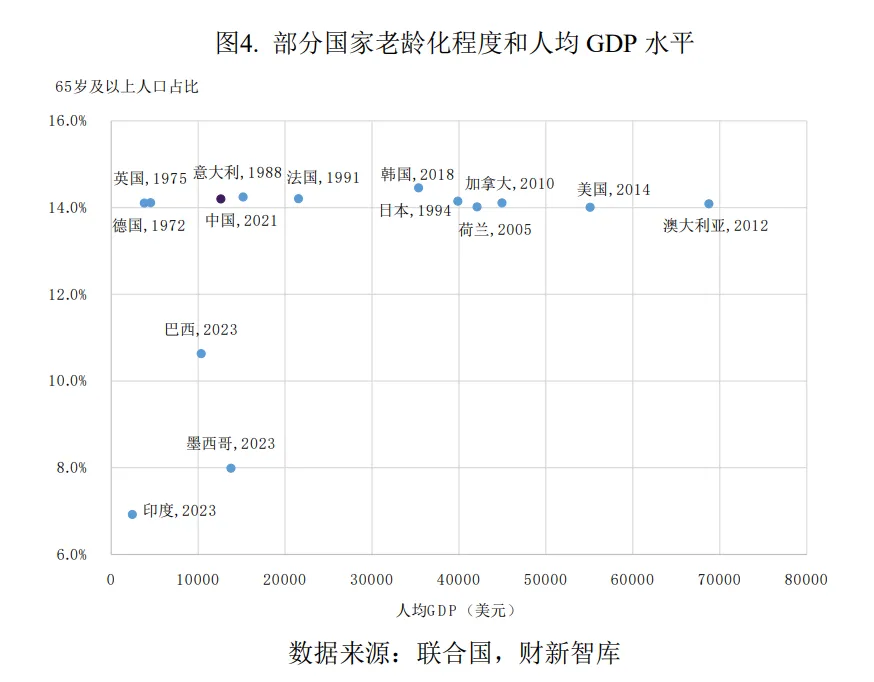 图:部分国家老龄化程度和人均GDP水平