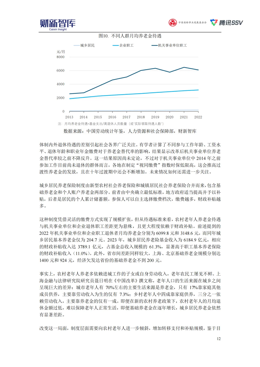 图:不同人群月均养老金待遇