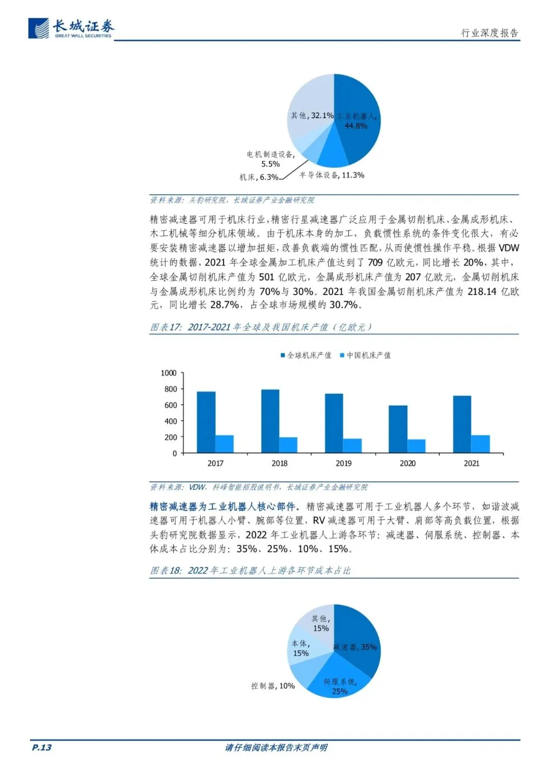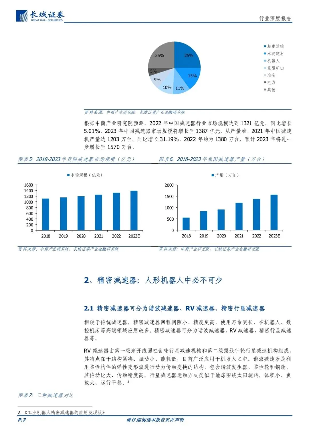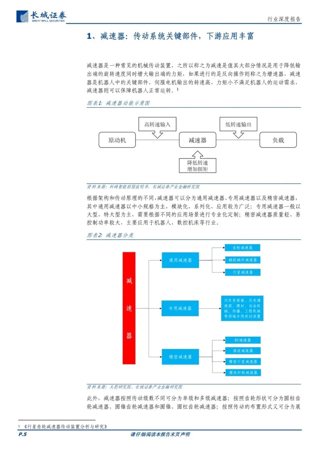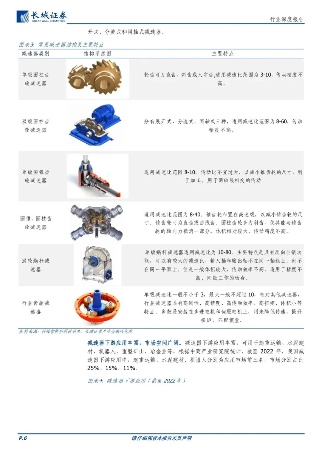 减速器:传动系统关键部件,下游应用丰富。减速器可以分为通用减速器、专用减速器以及精密减速器,其中通用减速器以中小规格为主,模块化、系列化、应用较为广泛;专用减速器一般以大型、特大型为主,需要根据不同的应用场景进行专业化定制;精密减速器质量轻、易控制功率较大,主要应用于机器人、数控机床等行业。