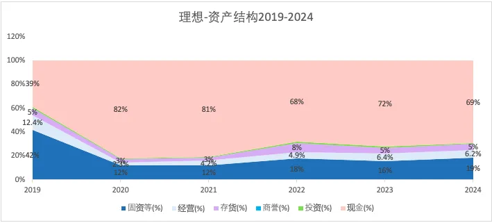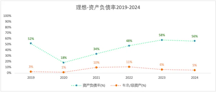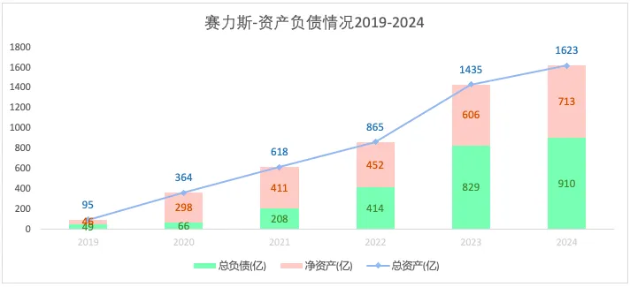 虽然资产负债在2021-2023年不断上升,但2024年的负债率在分析过的车企(比亚迪、吉利、上汽、长安、赛力斯)中处于较低水平,且负债的大部分是应付款。