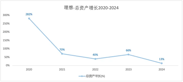 从总资产增长曲线可以看出,2024年总资产增长速度相比以往年份明显下滑。