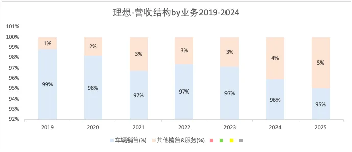 2019-2025车辆销售收入在总营收中的占比虽然下降,但仍贡献了主要收入。
