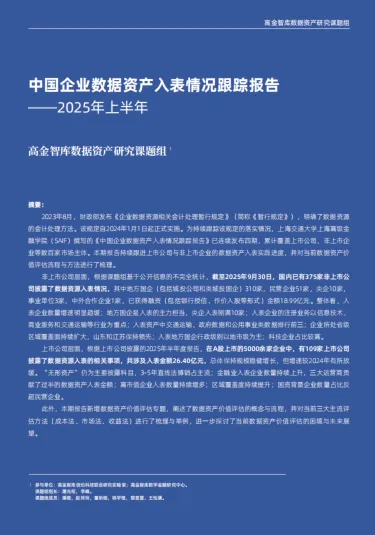 本文是上海高级金融学院高金智库数据资产研究课题组发布的《中国企业数据资产入表情况跟踪报告》(文末附下载方式),跟踪 2025 年上半年数据资产入表实践,涵盖上市与非上市公司现状,解析估值方法与案例,为企业入表提供权威参考,兼具数据支撑与实操价值。