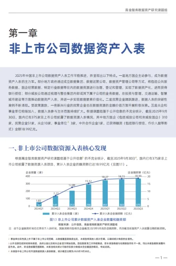本报告全面呈现了 2025 年上半年中国企业数据资产入表的全景态势,非上市公司以地方国企为核心推进,上市公司规模稳步增长且结构持续优化。数据资产价值评估已形成三大传统方法体系,但仍需破解模型适配、案例稀缺等难题。未来,需进一步完善估值标准与登记规范,强化技术赋能与政策引导,推动数据资产从 “入表确权” 向 “价值释放” 跨越,为数据要素市场化配置奠定坚实基础。
