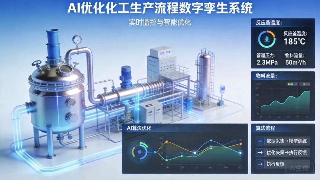 ? AI 在化工生产中的 4 大应用场景:● 工艺优化:通过机器学习算法优化反应参数,提升产品收率 5-10%● 设备预测性维护:实时监控设备状态,减少非计划停机时间 30% 以上● 智能质量控制:计算机视觉技术检测产品缺陷,检测准确率达到 99.9%● 供应链优化:AI 算法预测市场需求,降低库存水平 20%