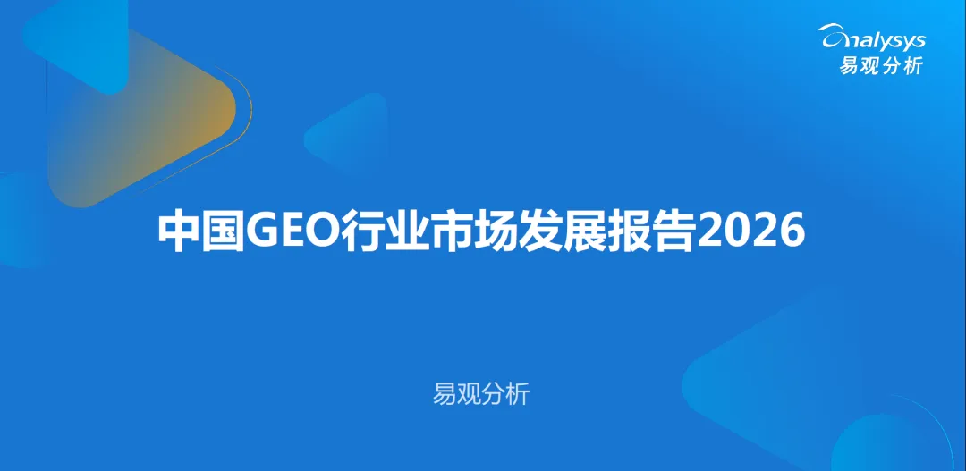 本文基于易观分析最近发布的《2026年中国 GEO(生成引擎优化)行业市场发展研究报告》,系统界定了 GEO 的核心定义与分析范畴,拆解了 AI 时代营销行业的底层范式变革,阐释了 GEO 的核心方法论与实施路径,梳理了全行业通用场景与细分行业落地实践,总结了企业 GEO 落地的十大核心误区,并提出了面向企业的可落地发展建议,为企业布局 AI 时代的营销新生态提供完整的决策参考。