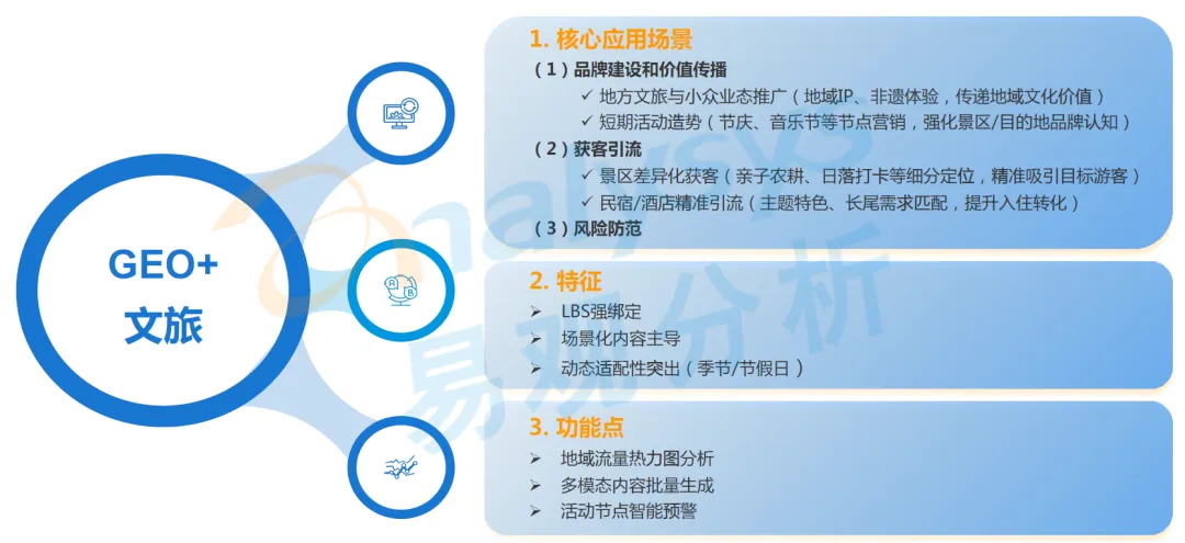 该行业 GEO 营销以地域语义绑定为核心,聚焦景区、地方文旅、活动、民宿四大场景,通过场景化内容生成与动态适配能力,精准对接游客需求,依托地域流量分析、多模态内容创作等功能,实现从曝光到转化的全链路提效。