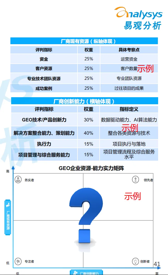 ▌基于实力矩阵模型,科学选型 GEO 供应商