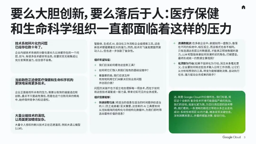 智能体时代正在为医疗保健和生命科学行业带来前所未有的机遇。通过Google Cloud的解决方案,企业可以更高效地整合技术、优化流程、提升合规性,并实现真正的智能化转型。迎接智能体浪潮,是企业保持竞争力和推动创新的关键一步。