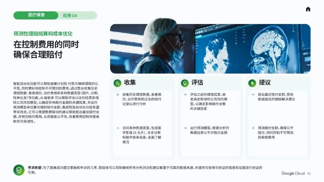 - 提出最优赔付建议,提高公平性并优化费用控制。