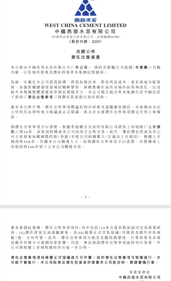 近期,中国西部水泥(02233.HK)公告拟转让国内若干水泥资产,潜在买家指向海螺系。这到底是偶然处置,还是近三年财务压力、盈利结构分化、战略转向共同推动的必然选择,引发行业关注。而从西部水泥近三年财报拆解来看,终极结论便是压力清晰,卖资产似乎是 一道“必答题”。