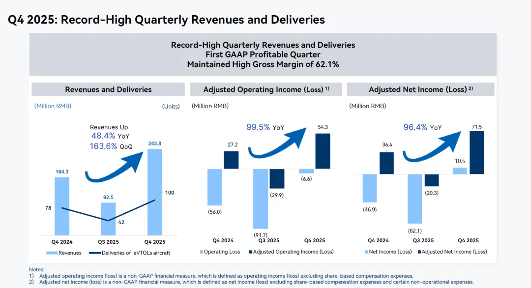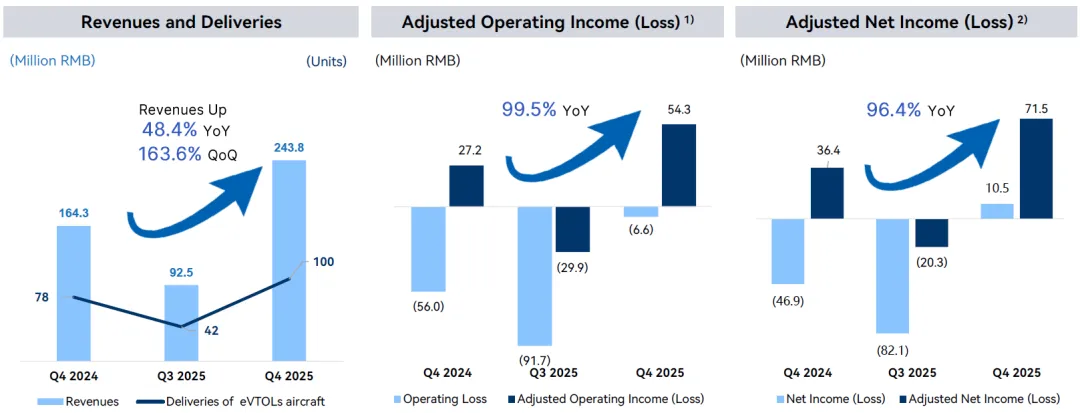 2025 年第四季度,亿航智能交出了上市以来最强劲的季度财务成绩单,核心经营数据全面超预期,实现了历史性的盈利突破。