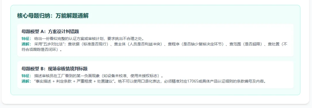 从历年真题的题海中,我们提取出主导考试命脉的8个核心“母题模型”,只要掌握其底层通解,即可无视题干包装的千变万化2。母题一:合格评定六步闭环与方案要素重构模型