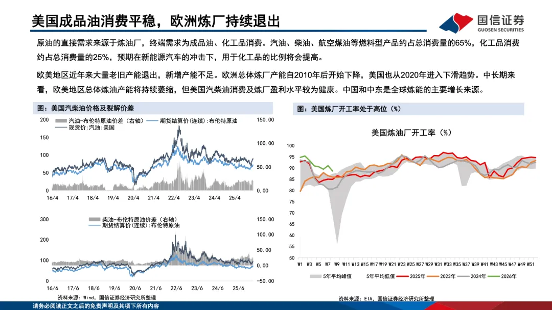 美、中、欧分别以 19.7%、15.9%、13.8% 的占比位列全球原油需求前三