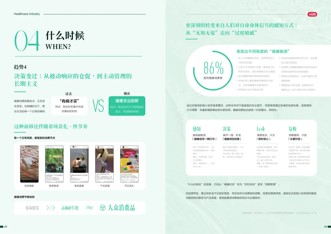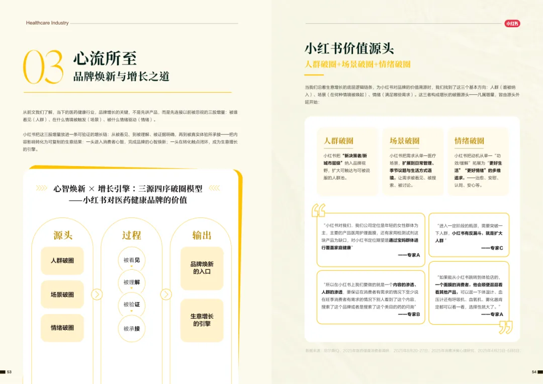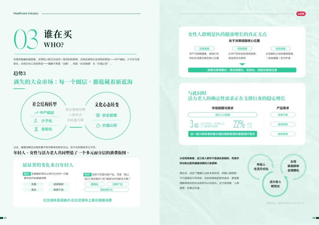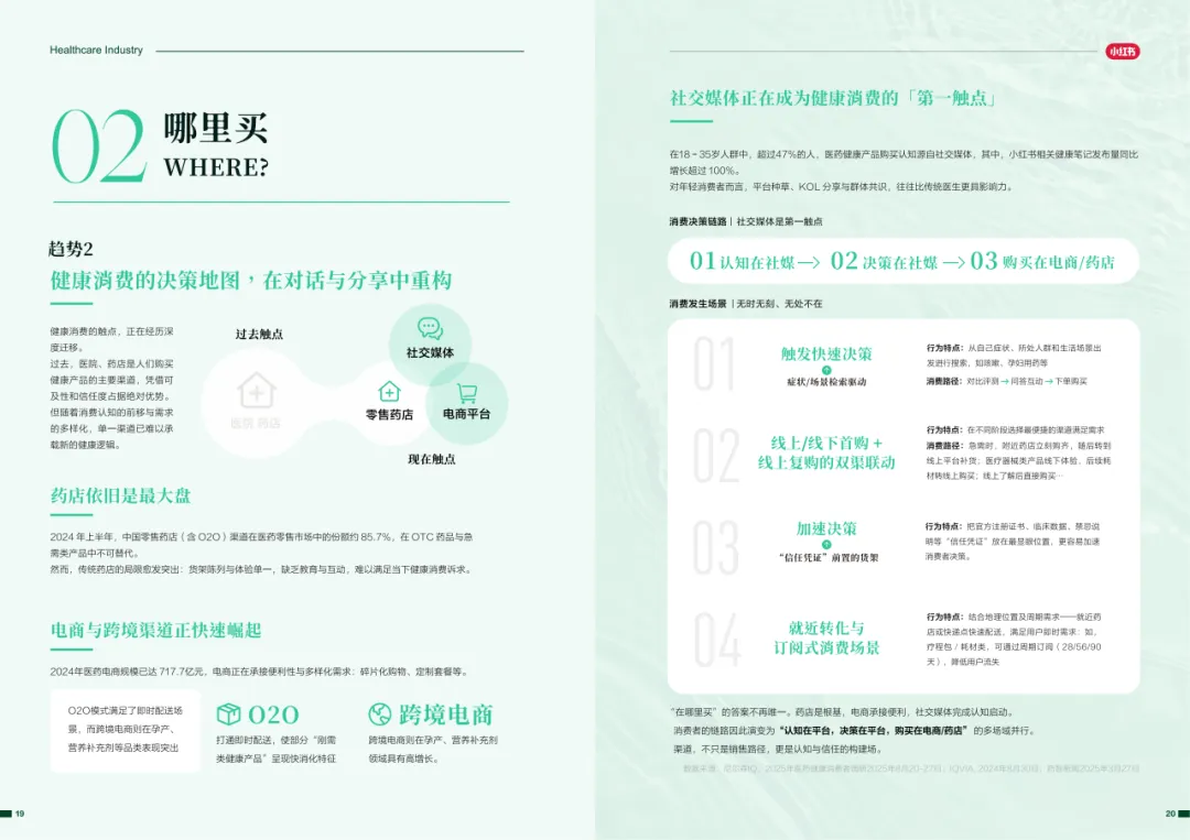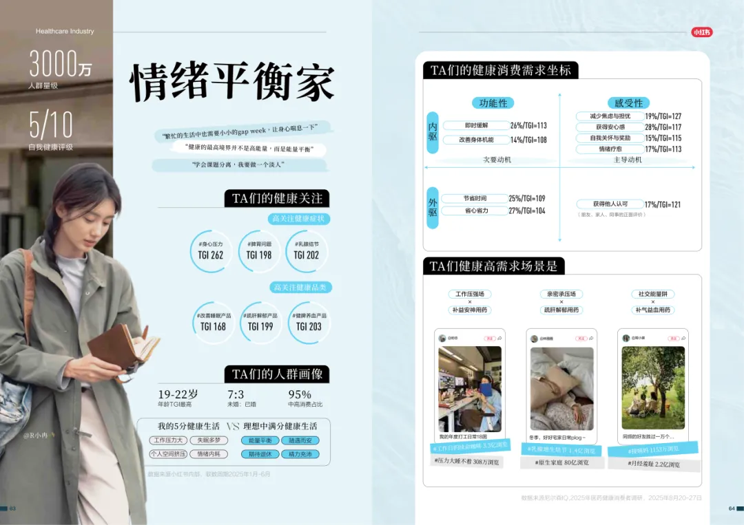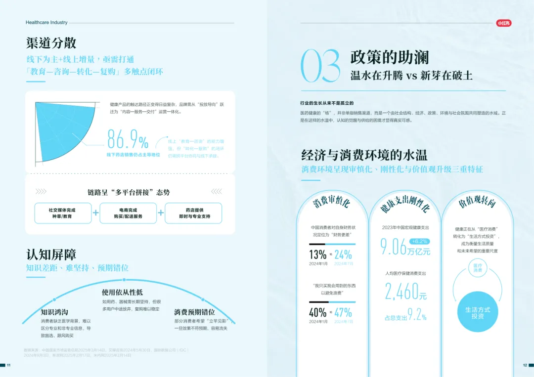 近年来,医药大健康行业在政策压力、市场环境和消费者认知三重因素的影响下不断演进。站在这个“新挑战”与“新机遇”的十字路口,小红书联合尼尔森IQ发布《愈见浪潮,生长有方:2025-2026医药健康行业消费趋势白皮书》,聚焦“人”这一核心变量,深入剖析健康消费人群的认知演变、行为趋势、消费链路与动机,旨在帮助品牌洞悉医药行业的当前图景与未来方向。