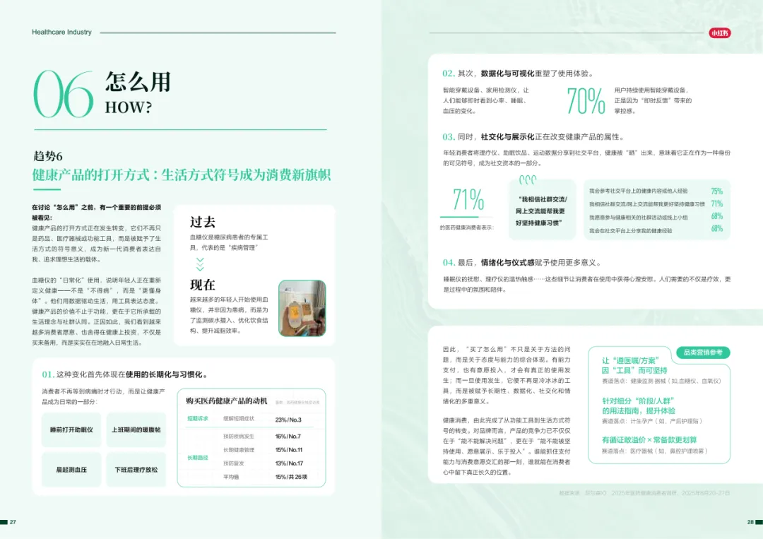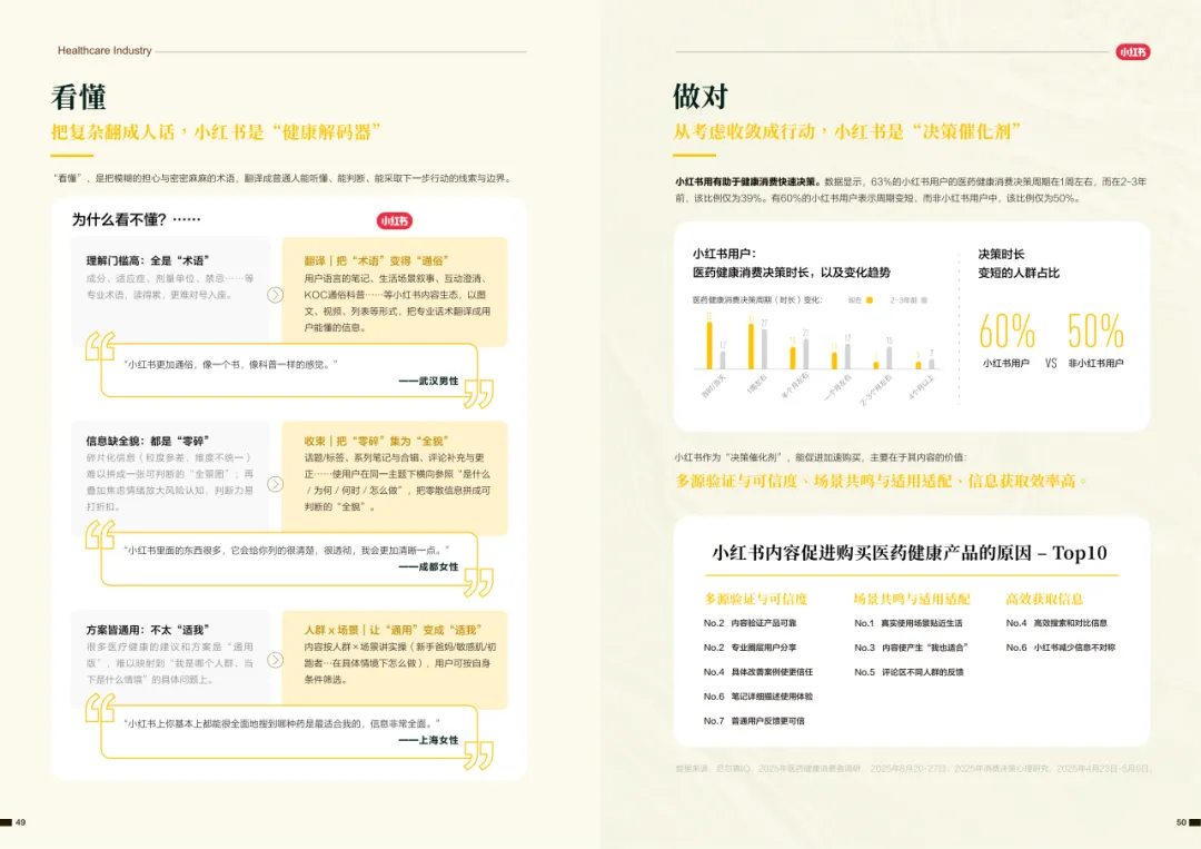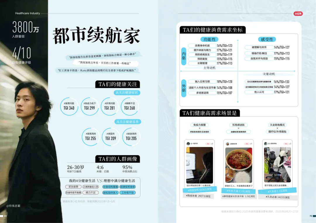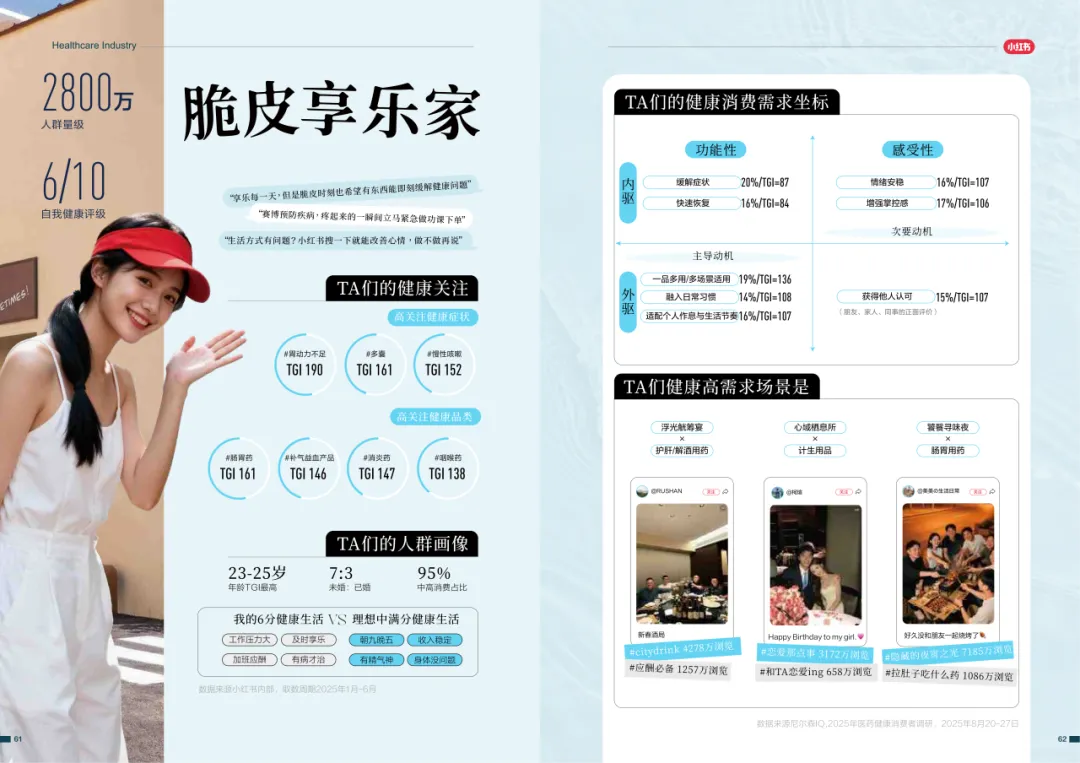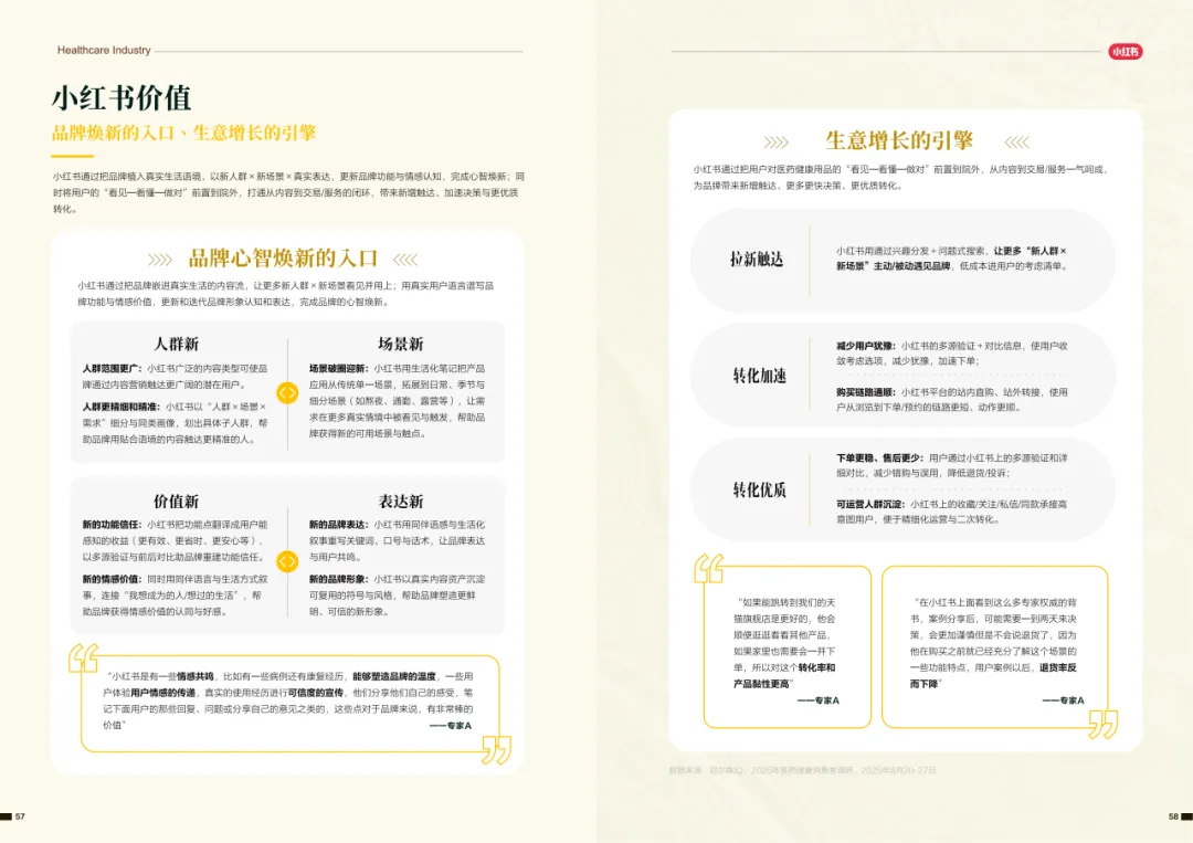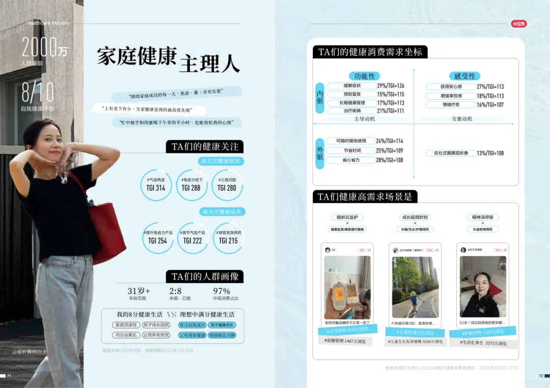 近年来,医药大健康行业在政策压力、市场环境和消费者认知三重因素的影响下不断演进。站在这个“新挑战”与“新机遇”的十字路口,小红书联合尼尔森IQ发布《愈见浪潮,生长有方:2025-2026医药健康行业消费趋势白皮书》,聚焦“人”这一核心变量,深入剖析健康消费人群的认知演变、行为趋势、消费链路与动机,旨在帮助品牌洞悉医药行业的当前图景与未来方向。