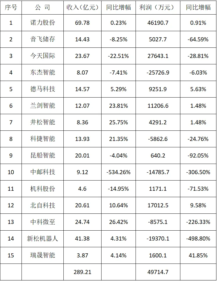 一个不容忽视的现象是:在货架整体均价下降2.41%的同时,自动化立体库货架均价降幅达2.76%,并且是连续多年下降。这至少能说明立体库的竞争尤其激烈。2024年对集成商而言是痛苦的一年,绝大多数的企业利润断崖式下降,大量企业亏损。这也倒逼货架企业降价。很多龙头企业也感受到降价带来的压力。表5是2024年15家上市公司的业绩表。