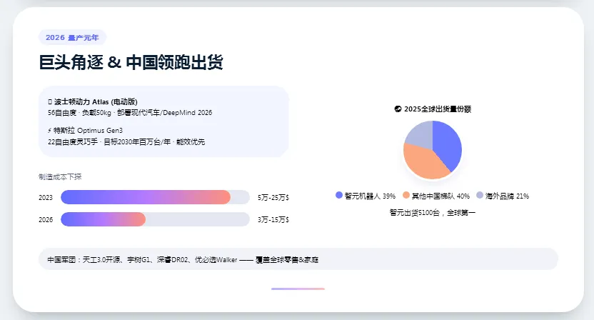 第二,供应链的安全与成本控制是决胜规模化市场的关键。跨国企业应当高度重视中国在核心零部件领域的绝对成本优势与极速响应能力,积极探索联合研发与深度绑定策略,以应对未来必然爆发的残酷价格战。