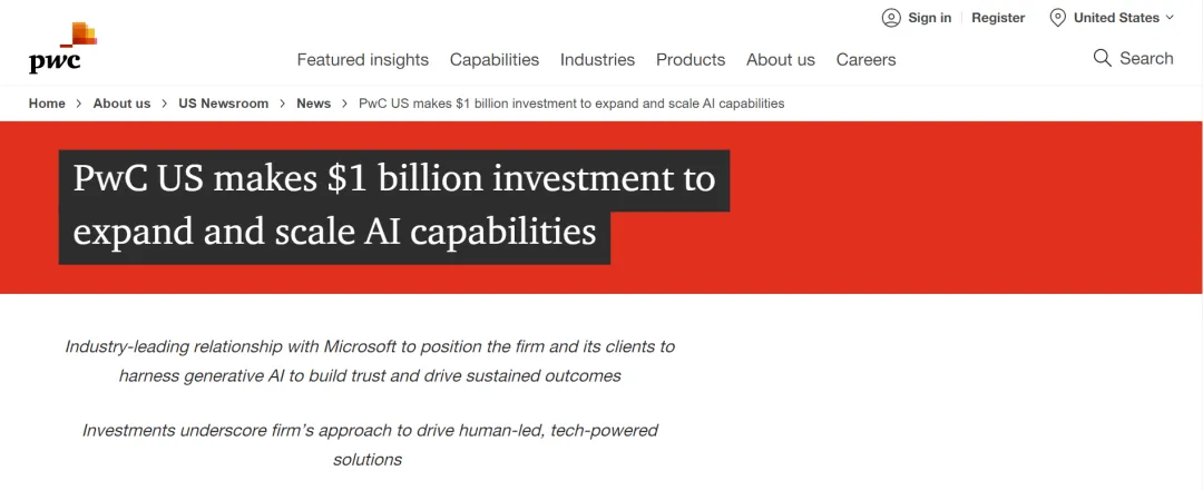 PwC 投资10亿美金开发AI