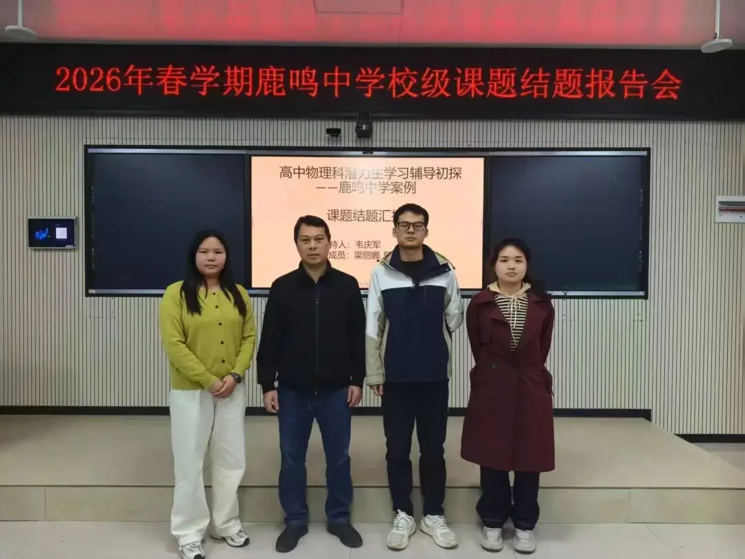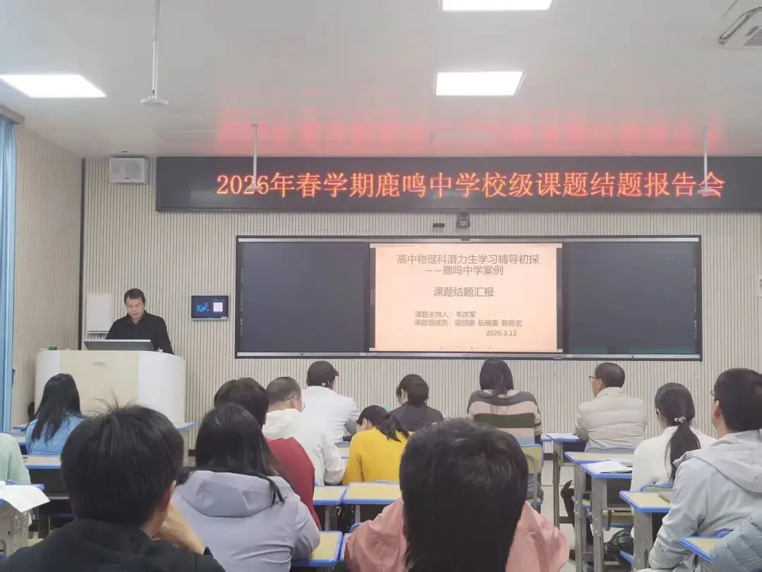 为扎实推进学校教育科研工作,总结课题研究成果,提升教师专业素养与教学实践能力,鹿鸣中学于2026年3月12日在录播室顺利召开校级课题结题报告会。