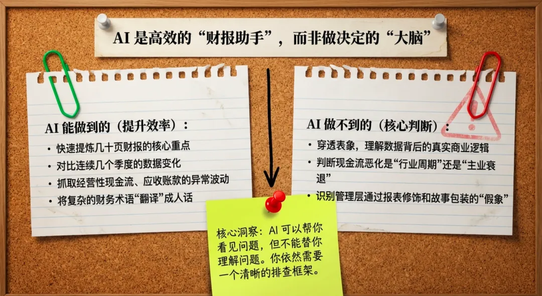 这几年,AI 让普通人离专业分析更近了一步。这是好事。它降低了阅读财报的门槛,也让更多人有机会建立起自己的投资框架。但门槛降低,不代表判断可以省略。
