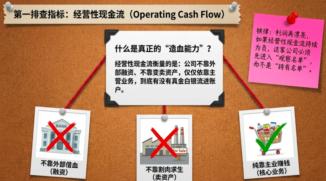 对我来说,这是一个很直接的筛选逻辑:利润再漂亮,如果经营性现金流持续为负,这家公司就要先进入观察名单,而不是直接进入持有名单。