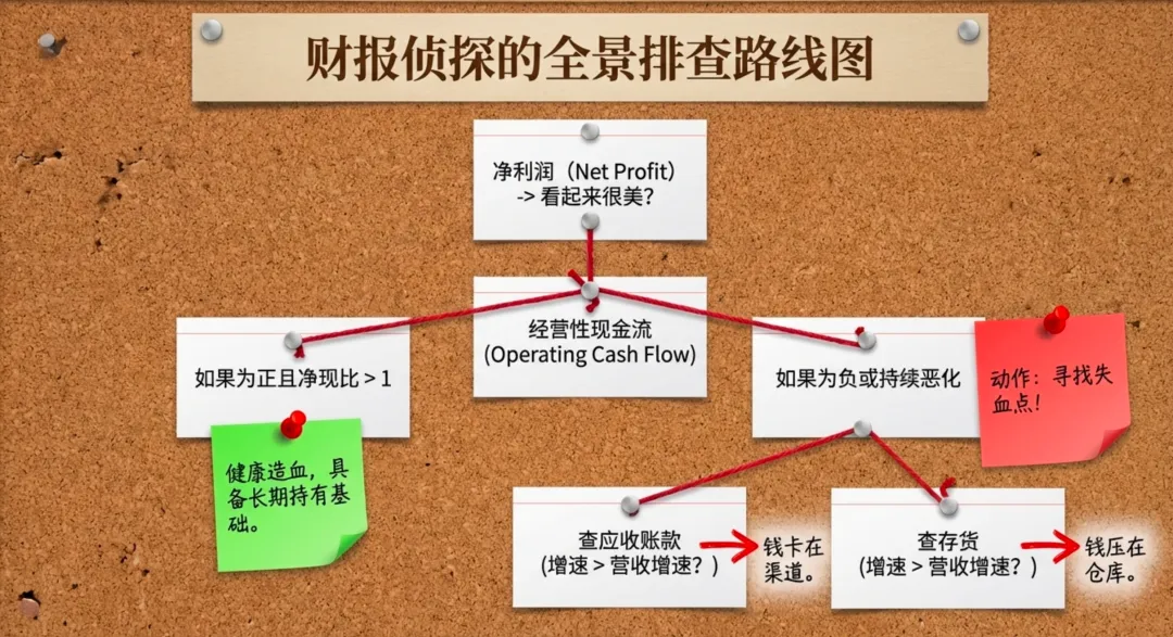 真正会看财报的人,不会只看利润,而是会接着问:这些利润,最后到底有没有变成现金?如果没有,是卡在应收账款,还是堵在存货里?