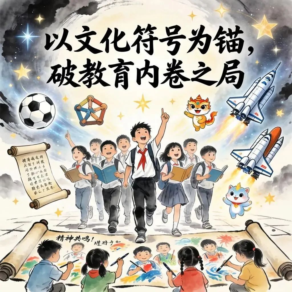 以文化符号为锚,铸精神主权之魂,破教育内卷迷局,归育人本真之境:概括思想体系的核心路径——用文化符号锚定精神,打破功利化内卷,回归教育本质。