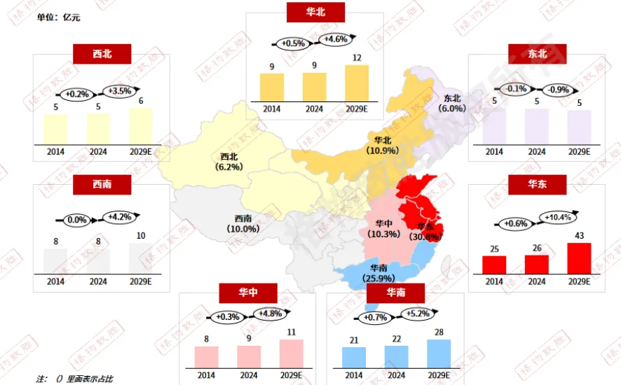 业绩占比25.9%,以广东为首的新兴经济中心,经济实力雄厚,并且发展潜力巨大;