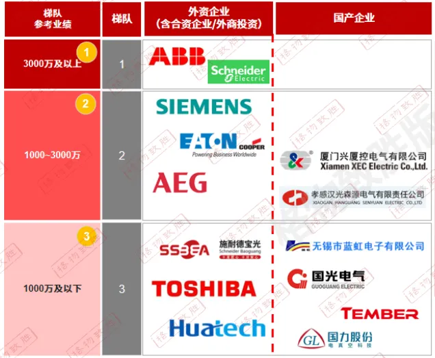 AEG、森源、施耐德宝光等厂家在过去业绩保持份额基本持平;