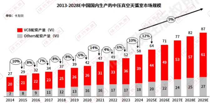 2013-2028E中国国内生产的中压真空灭弧室市场规模