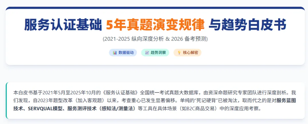 《服务认证基础》5年真题演变规律与趋势白皮书