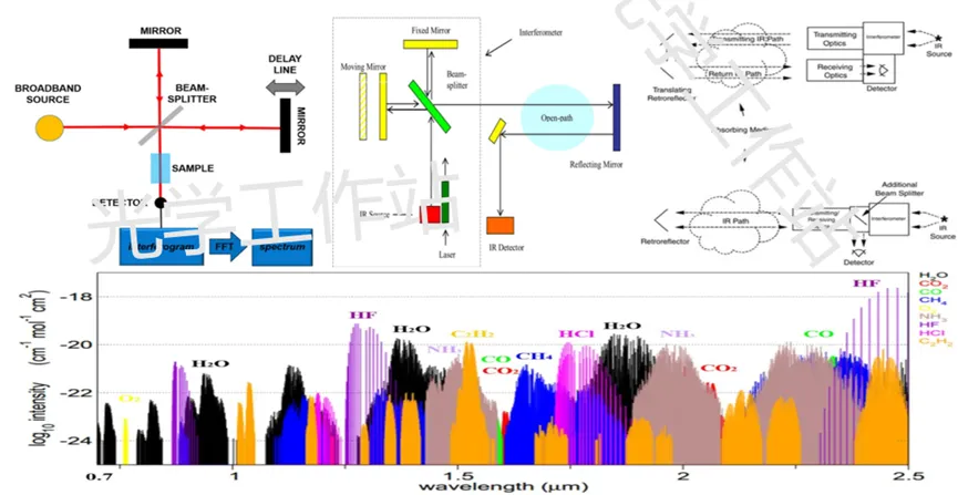FTIR(Fourier Transform Infrared)利用气体分子对红外光的吸收特性实现气体识别。