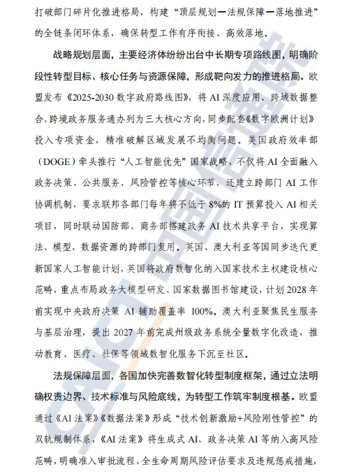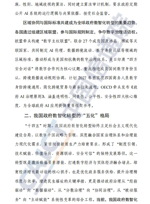 总体而言,这份报告兼具政策高度、技术深度与实践温度,既是对“十四五”时期政府数智化转型的系统总结,也为“十五五”乃至更长时期的治理现代化提供了路线图与行动指南。