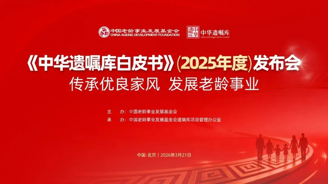 3月21日,《中华遗嘱库白皮书》(2025年度)发布会,以家风为脉,以老龄为本,我们不见不散!